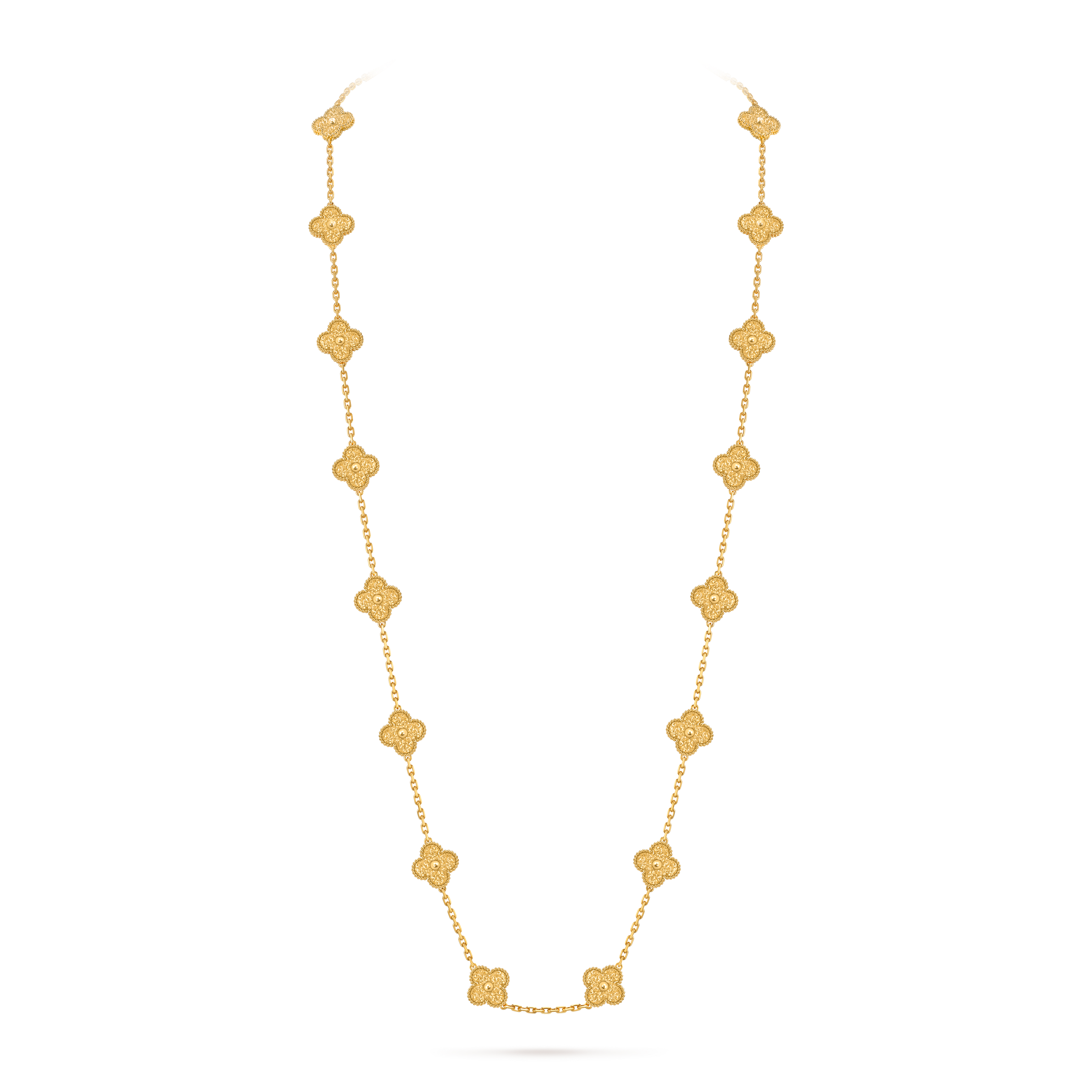 Collection: Vintage Alhambra. Metal: Yellow Gold. Stone/Material: Plain. Size/Motif: 20 motifs.